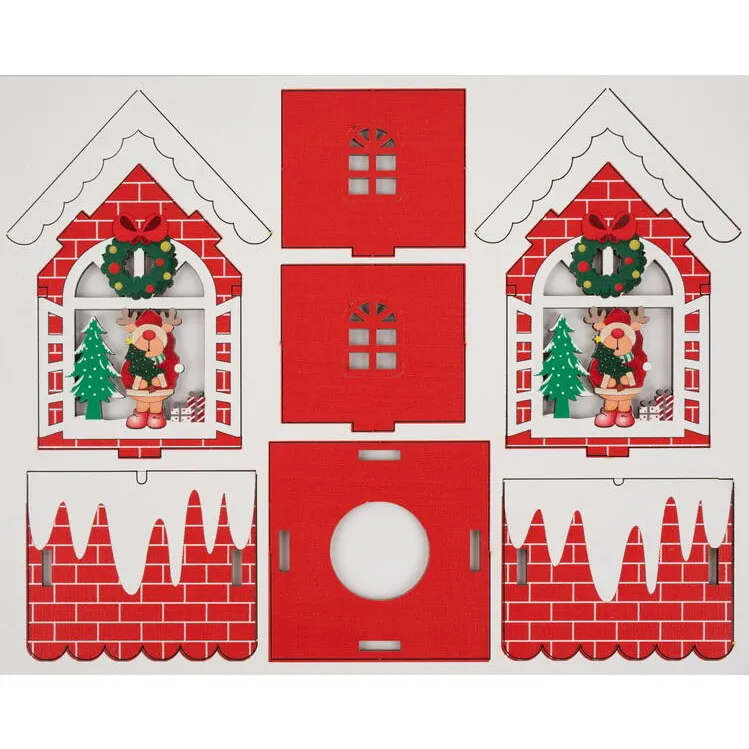 Ozdoba dřevěná Color Christmas 03 - dřevěný domeček, velikost 22 x 18 cm, lehce sestavitelné, součástí je lampička a 3 baterie LR1130