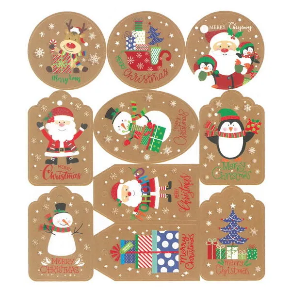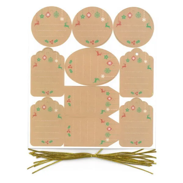 Jmenovky na dárky Christmas 03 - 10 ks jmenovek, velikost jmenovky 5,7-8 cm, rozměr archu 19 x 21 cm, šnůrka na pověšení