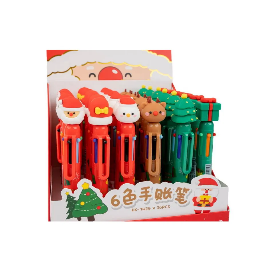 Pero kuličkové šestibarevné Merry Christmas mix - plastové kuličkové pero, stiskací mechanismus, šestikombinace červená-modrá-zelená-černá-oranžová-fialová, šíře stopy 0,7 mm, mix barev, Druh obálky / provedení: Plast