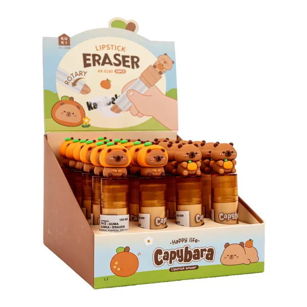 Pryž Capybara - barevná pryž "rtěnka", vysunuje se točením, rozměr 9 x 2 cm