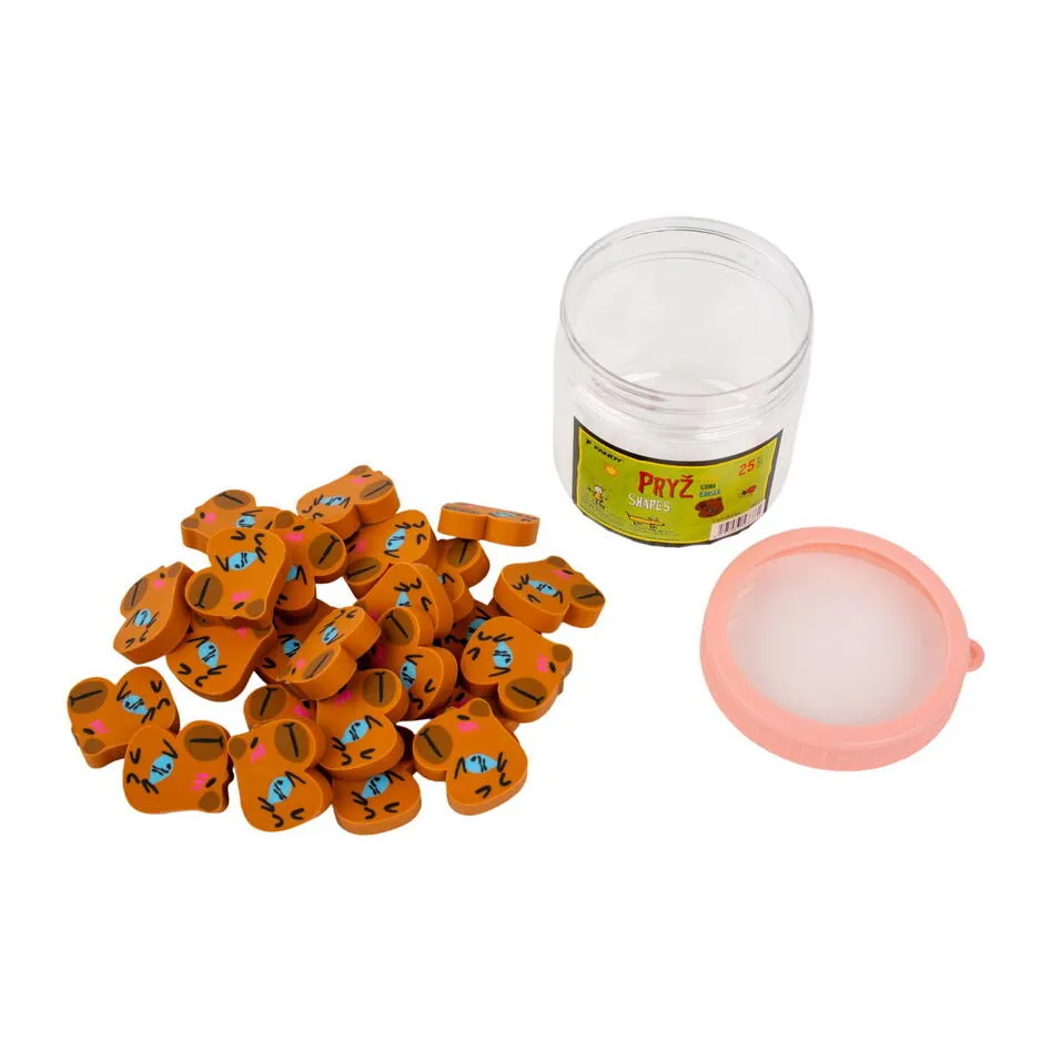 Pryž Shapes 25 ks 01 capybara - barevná školní pryž, krásné dětské motivy, 25 ks v praktické PVC dóze