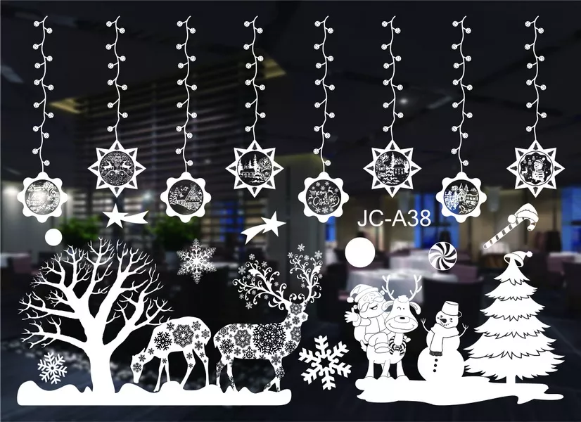 Samolepka na okna 35x50 cm 2 ks 08 - dekorace bez lepidla, drží díky svým elektrostatickým vlastnostem, je vhodná na okna, dveře nebo zrcadla, formát 35 x 50 cm, 2 archy s několika jednotlivými samolepkami, mix vzorů