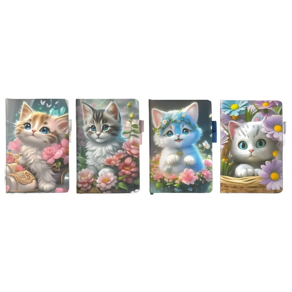 Zápisník C6 Cat mix - zápisník s gumičkou na pero, atraktivní motivy, 80 listů, linkovaný papír, rozměr zápisníku 11,4 x 16,2 cm, mix vzorů